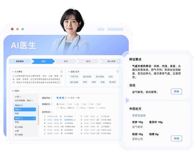 AI辅助诊疗,生成四诊结果与方剂建议,智能化实现“治未病”与慢病管理